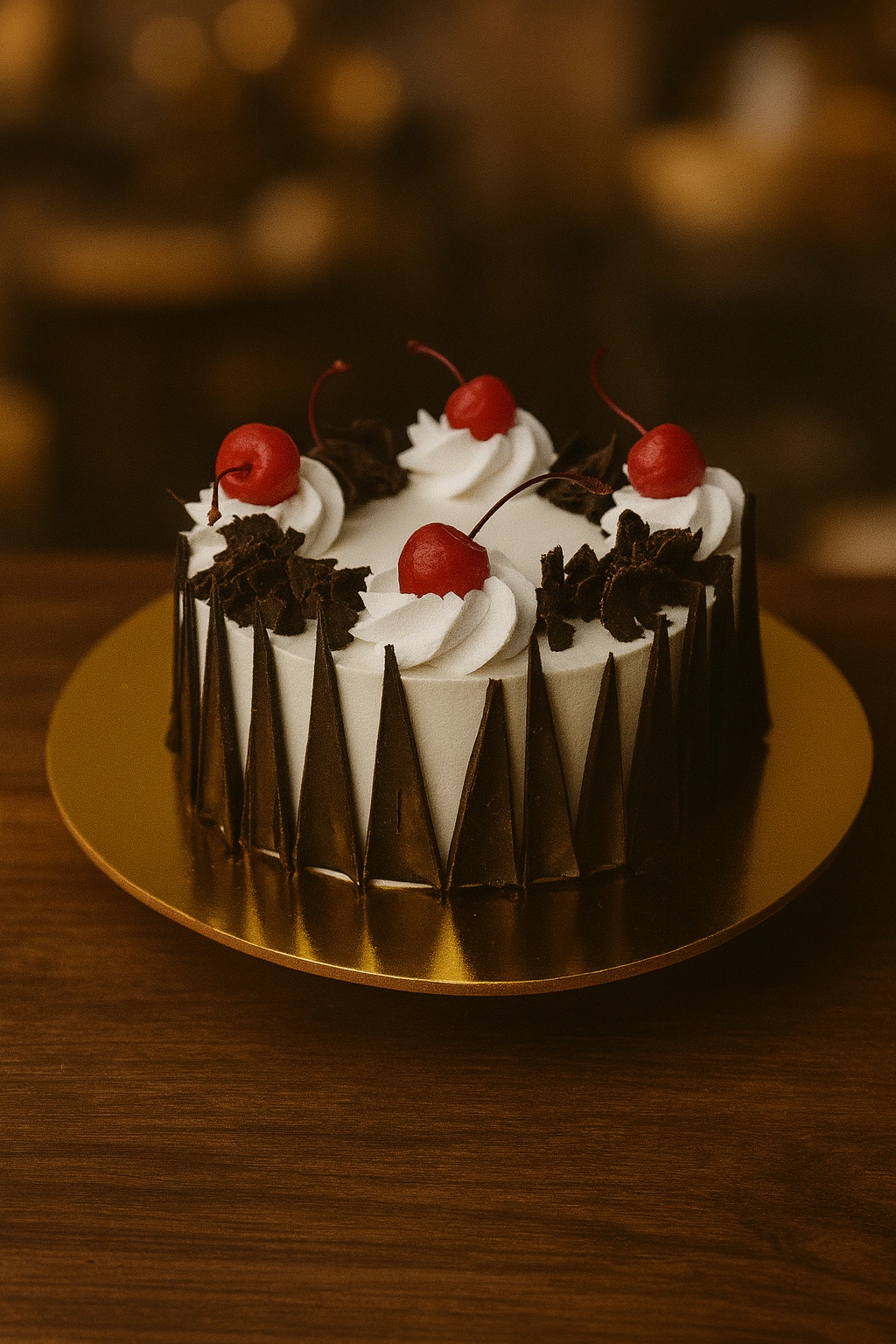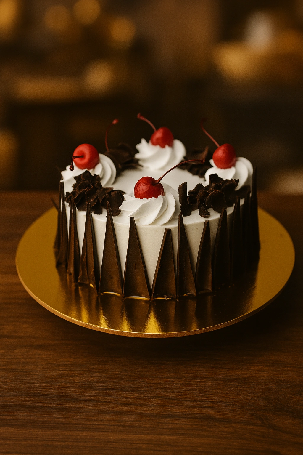 Each Black Forest Cake is made using premium ingredients — high-quality cocoa, fresh dairy cream, and real cherries. The result is a dessert that’s light, flavorful, and perfectly balanced between sweetness and texture.