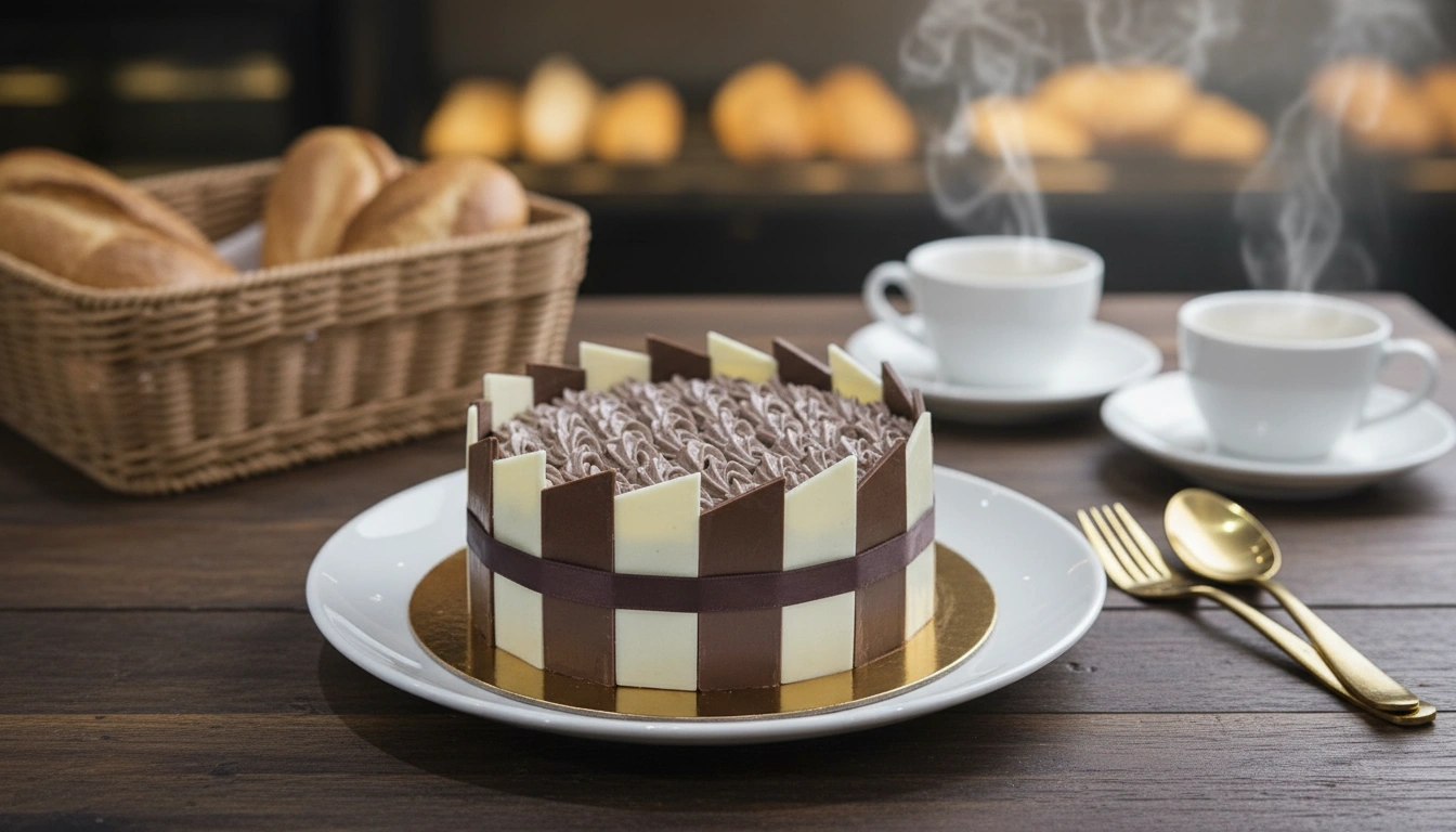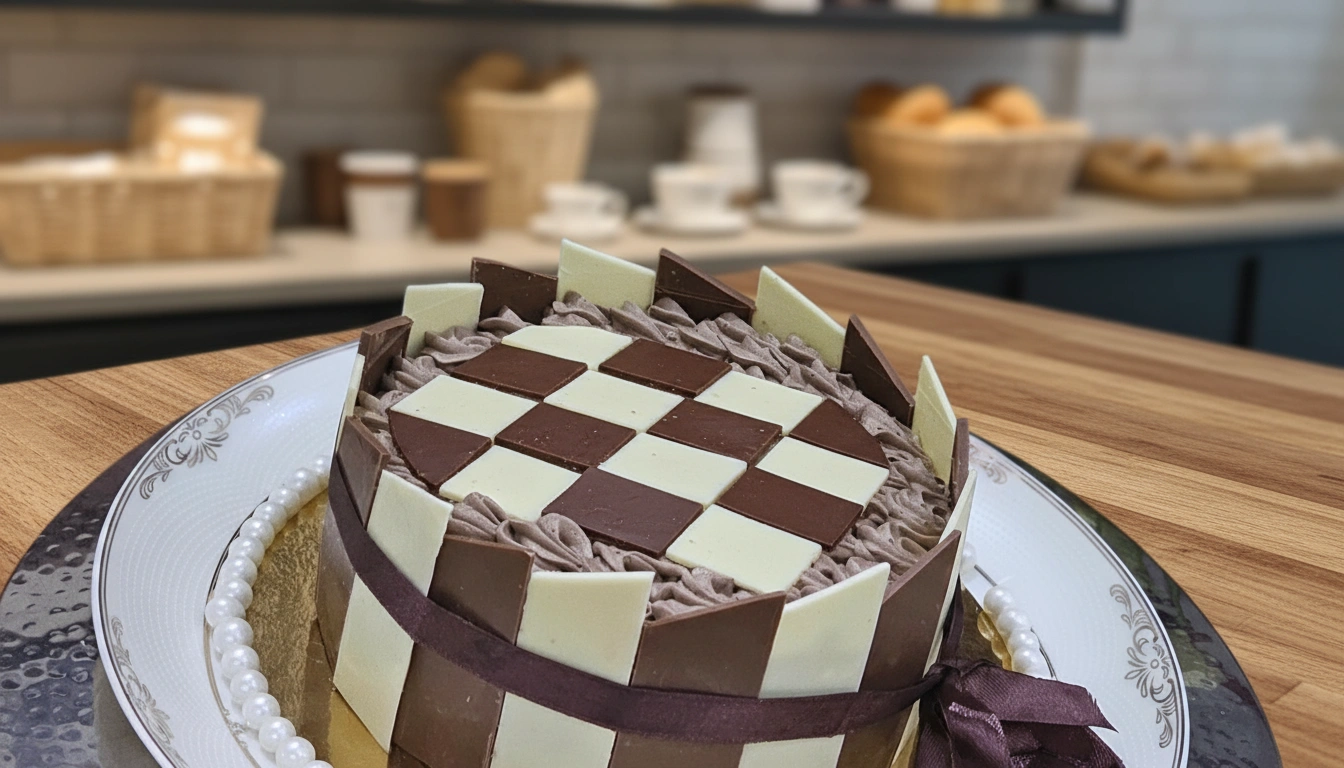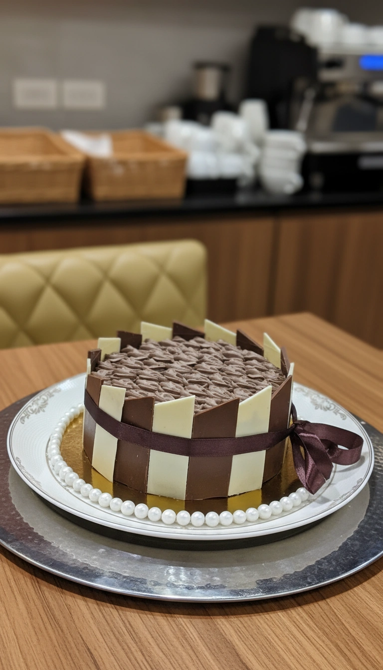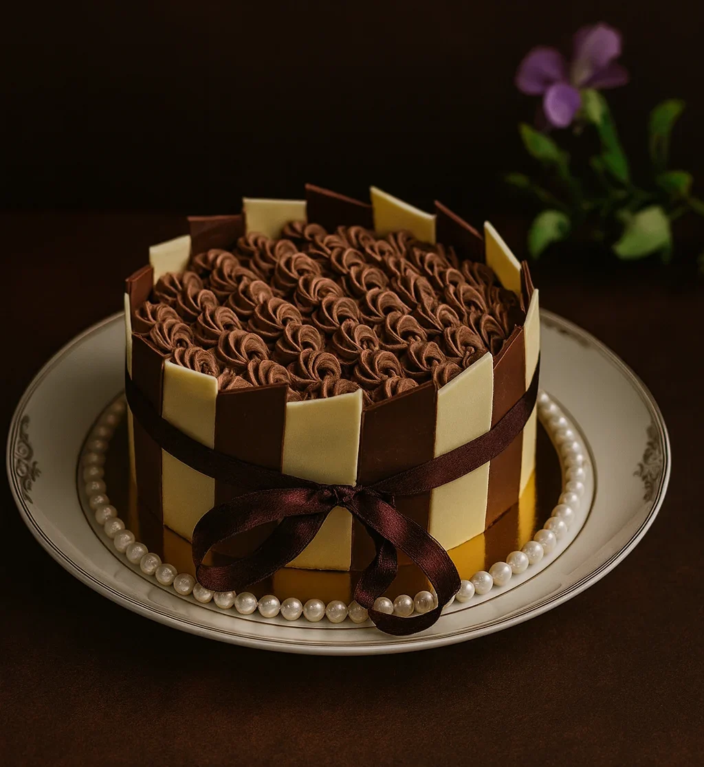 A lighter chocolate cake with airy sponge and soft cream, sweet without being heavy.