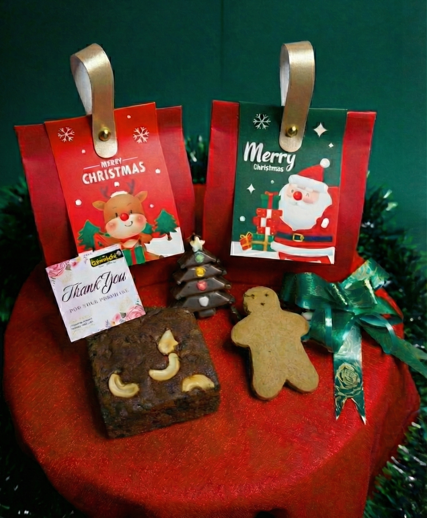 Inside the hamper, you’ll enjoy a Rich Plum Cake (100g)—soft, moist, and full of festive warmth—paired with a Gingerbread Cookie that delivers a crisp, spiced bite. Completing the experience is a delicious X-Mas Chocolate, adding a smooth and sweet finish to your celebration.