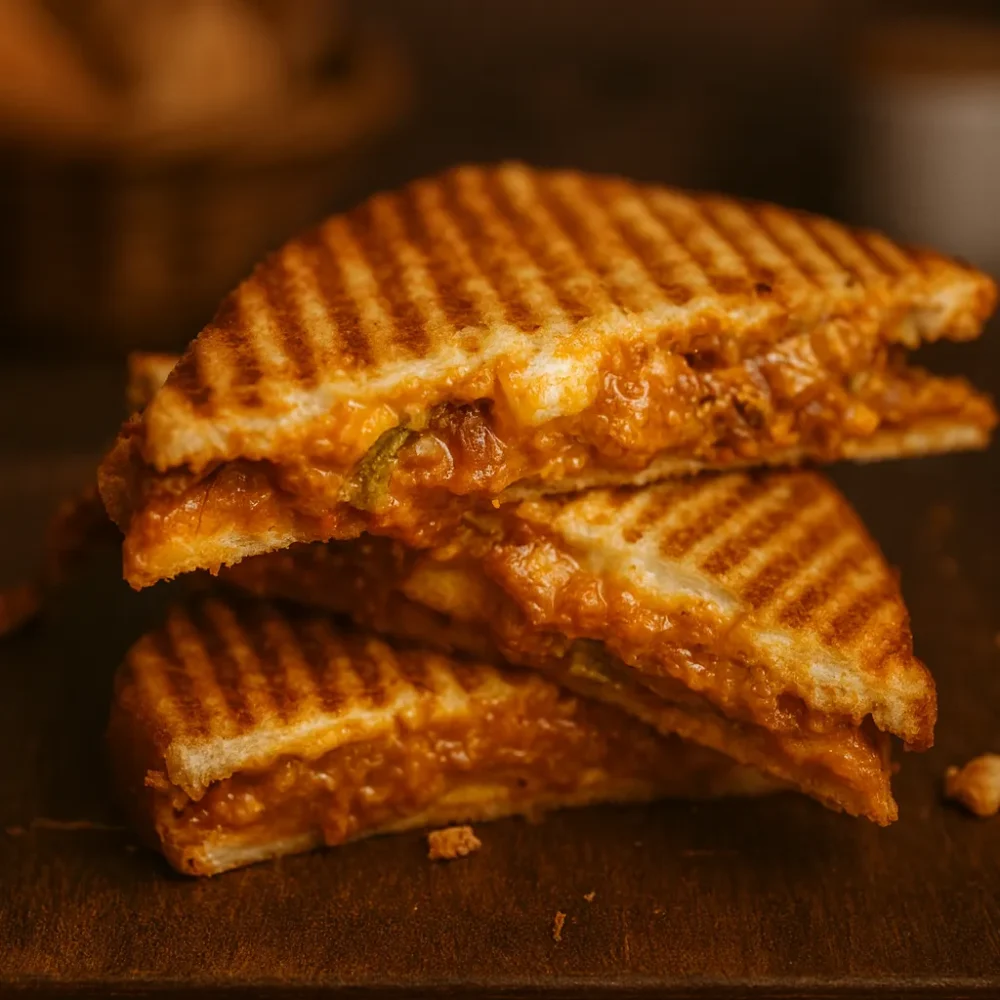 Soft sandwich bread stuffed with creamy makhani paneer, crisp veggies, and mild spice. A North Indian style, comfort-rich grab-and-go meal.