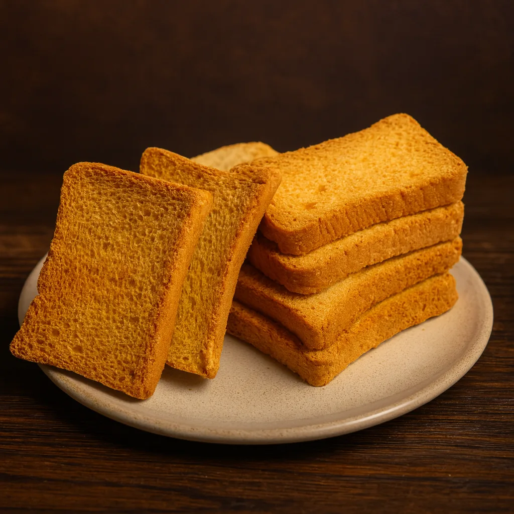 Golden, twice-baked milk rusks that are perfectly crispy and subtly sweet. A classic tea-time companion, they pair beautifully with coffee, tea, or warm milk, delivering nostalgic comfort in every bite.
