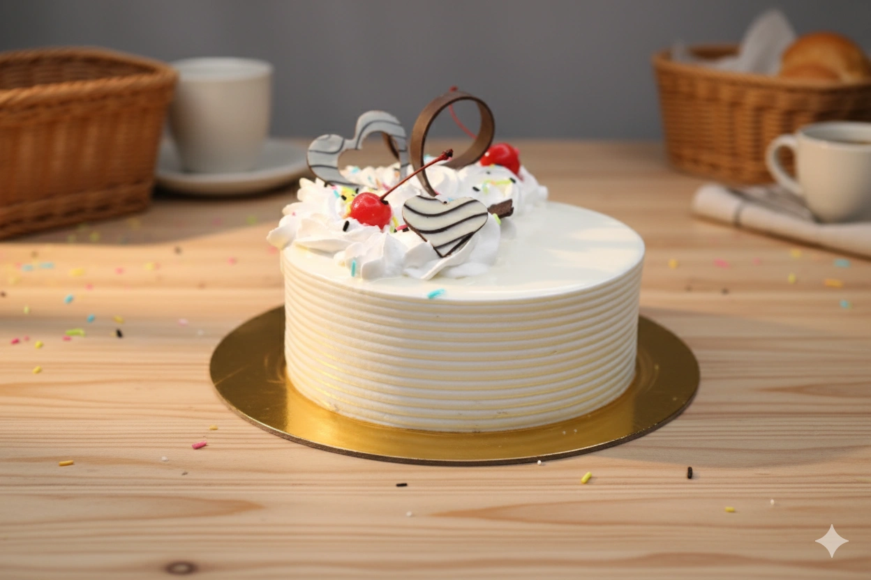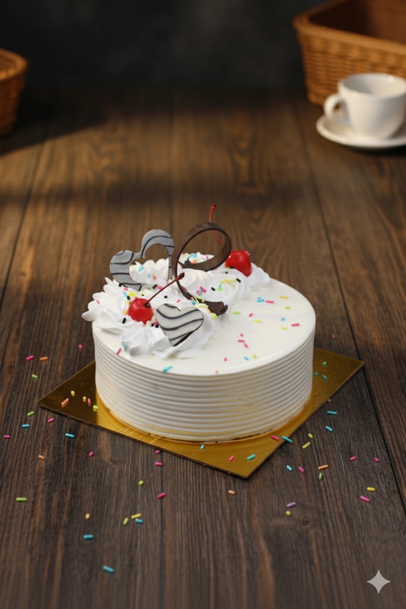Classic soft vanilla sponge with silky frosting. Elegant, lightly sweet, and universally loved.