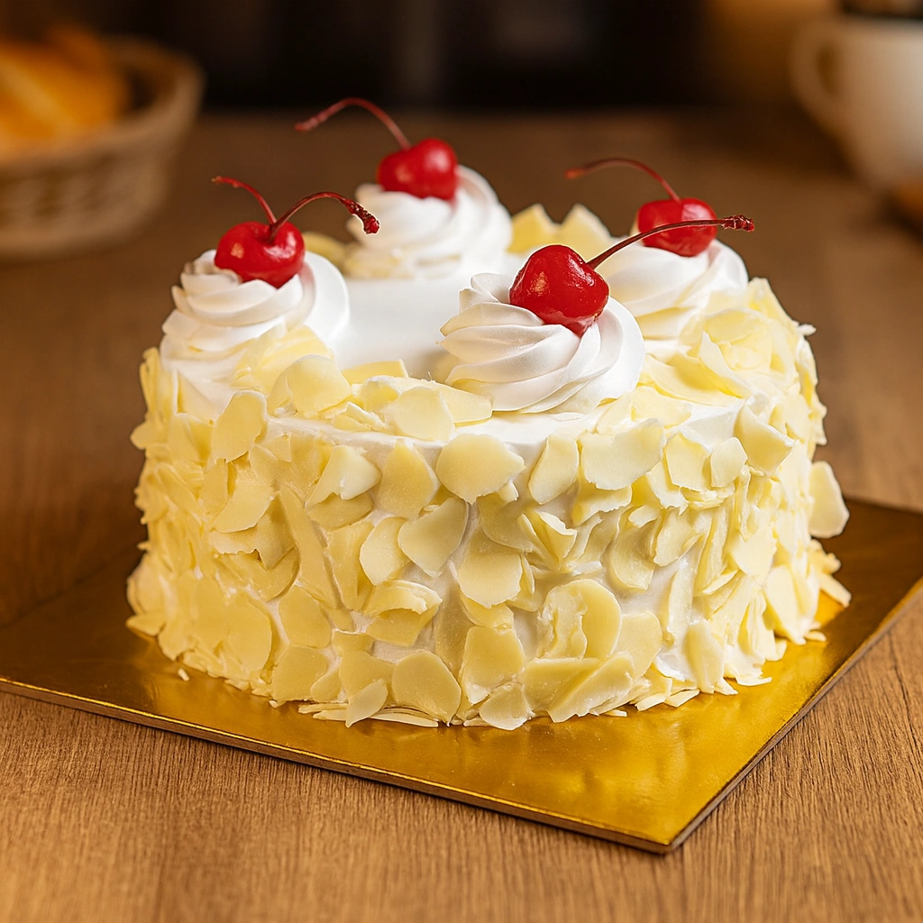 The delicate white forest cake flavour is what makes it so loved — a blend of vanilla sweetness and cherry tang, beautifully finished with smooth frosting and elegant decoration. Every bite melts in your mouth, offering a balance of creaminess and freshness.